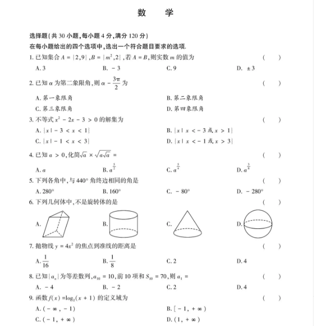 导读:安徽高职分类考试网为同学们分享安徽高职分类考试数学科目复习备考全真模拟题,希望能给准备备考复习数学科目的同学带来一些帮助哦。