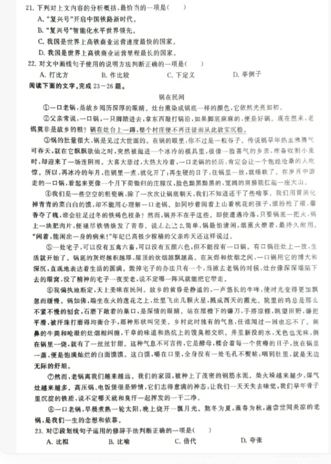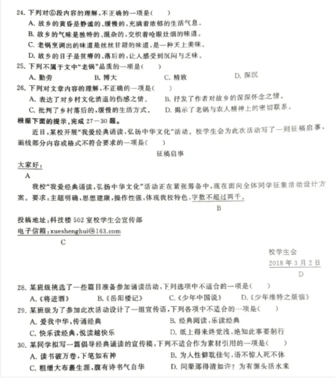 2024年安徽高职分类考试语文试卷真题预测