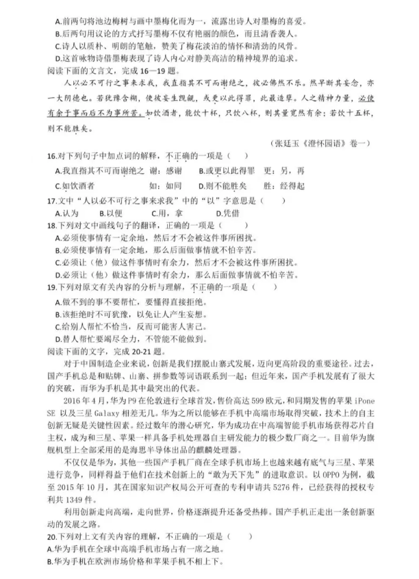 安徽高职分类考试语文试卷真题
