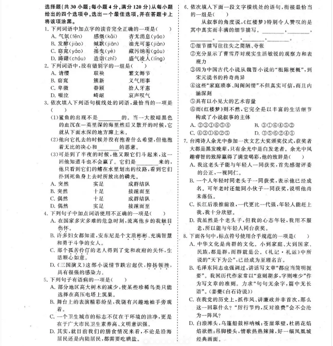 安徽高职分类考试报名时间越来越近,很多同学就有报名打算,所以开始制定自己得备考计划,到处搜集真题资料,今天安徽高职分类考试网为大家带来了文化考试中语文科目的真题资料,准备备考的同学们要注意啦。