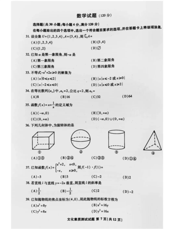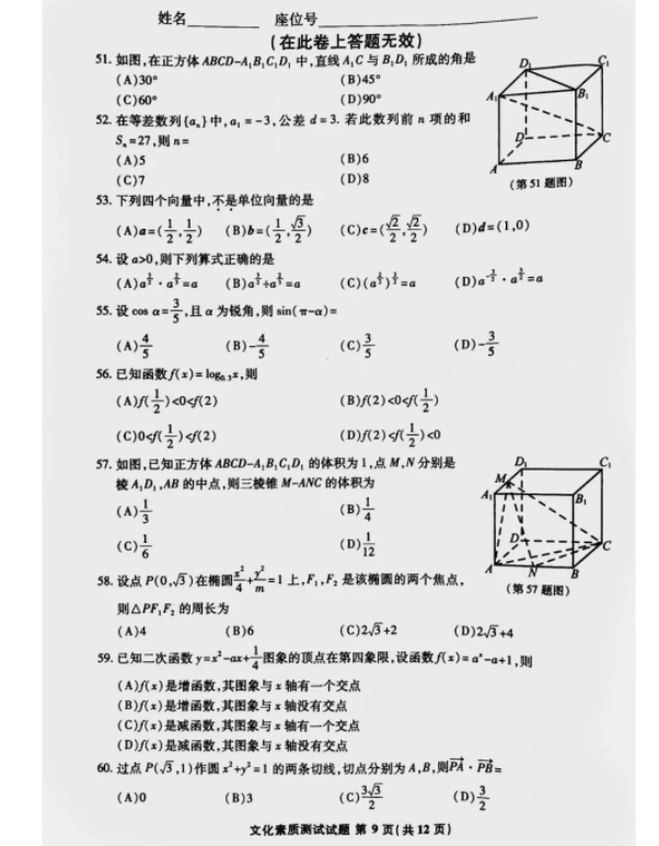 您现在的位置: 安徽高职分类考试网 >  真题资料 > 数学  > 2025年安徽高职分类考试数学科目试题