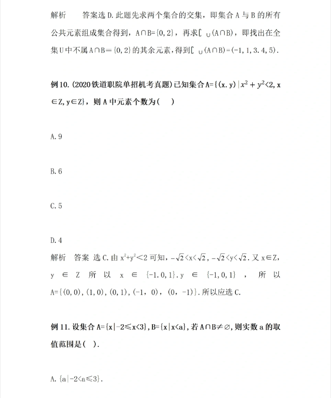 2024年安徽高职分类考试数学集合例题及答案解析