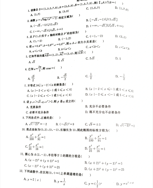 您现在的位置: 安徽高职分类考试网 >  真题资料 > 数学  > 2024年安徽高职分类考试数学模拟真题含答案解析