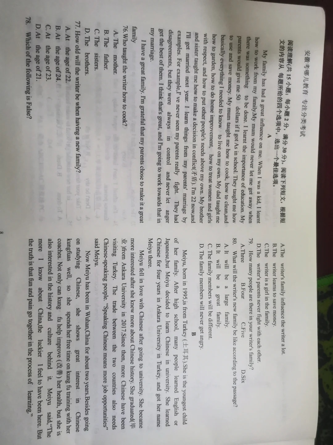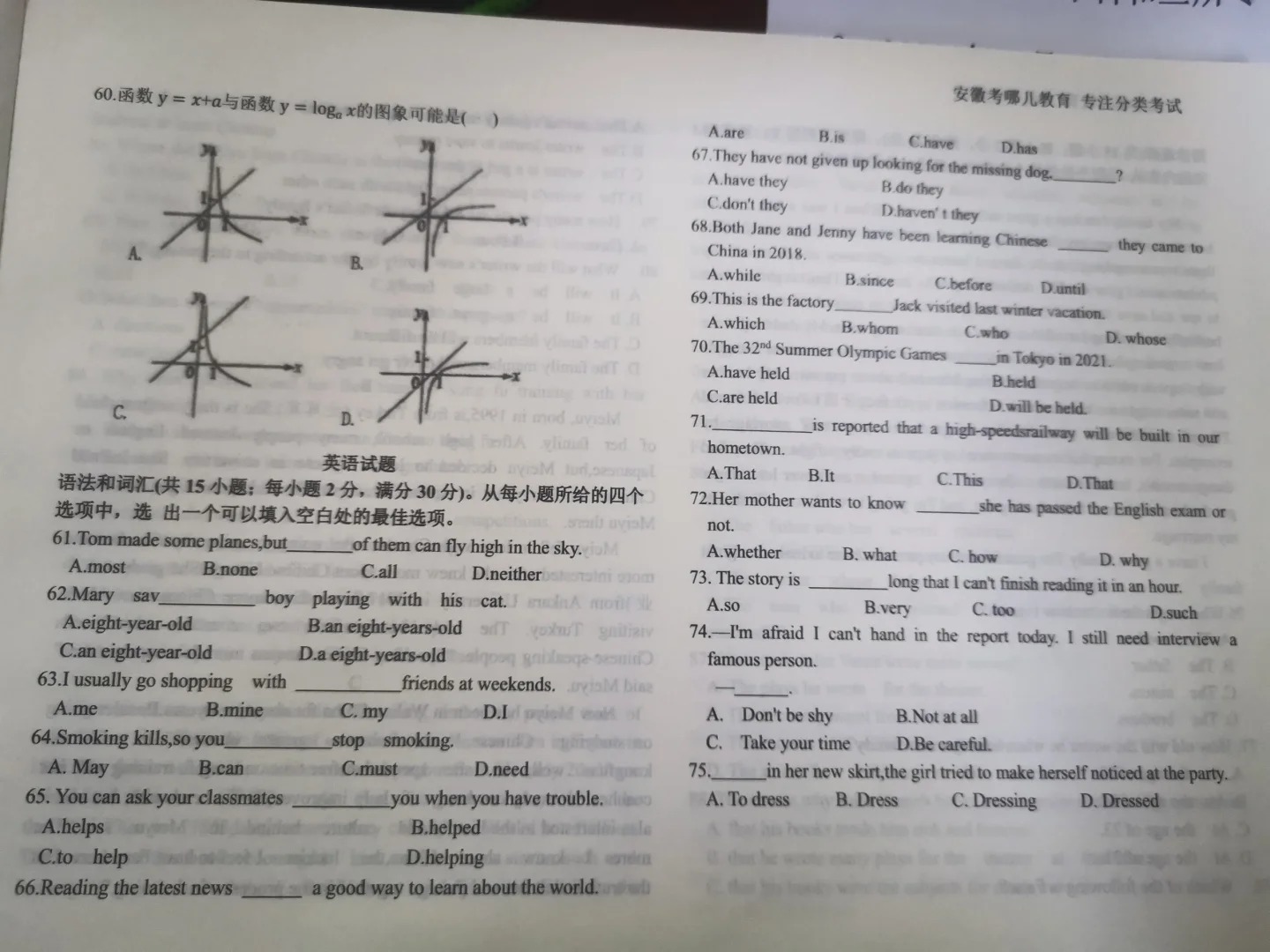 2025年计划报名参加安徽高职分类考试的同学们注意了,小编将为大家分享安徽高职分类考试英语测试试卷,希望能给需要参加考试的同学们带来一些帮助。