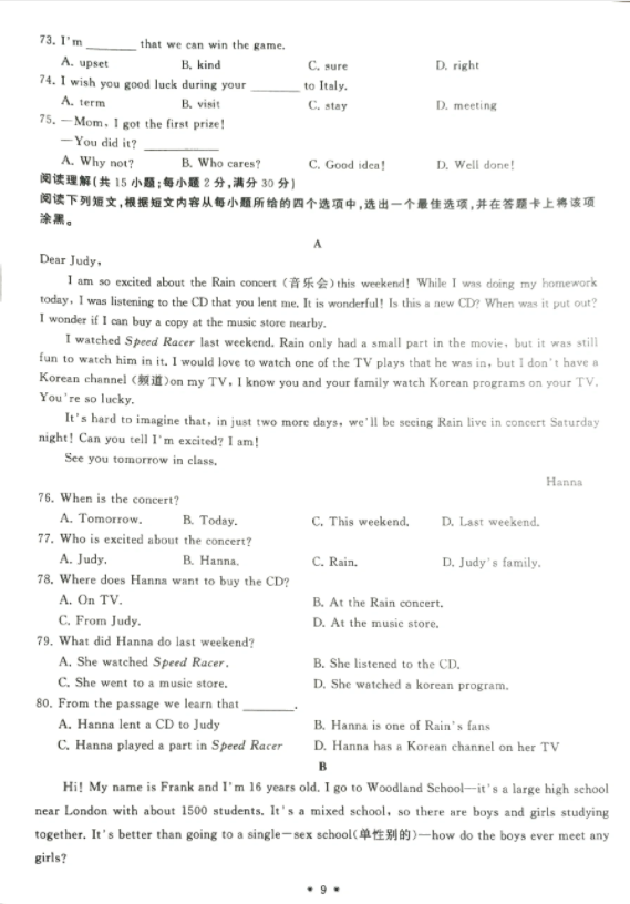 以上就是“ 2018安徽高职分类考试英语试卷真题资料”的全部内容,更多关于安徽高职分类考试的相关内容,如安徽高职分类考试真题资料、考报考条件、报名时间、考试科目、安徽高职分类考试成绩查询、分数线等敬请关注安徽高职分类考试网。