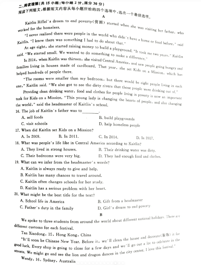 安徽高职分类考试英语真题