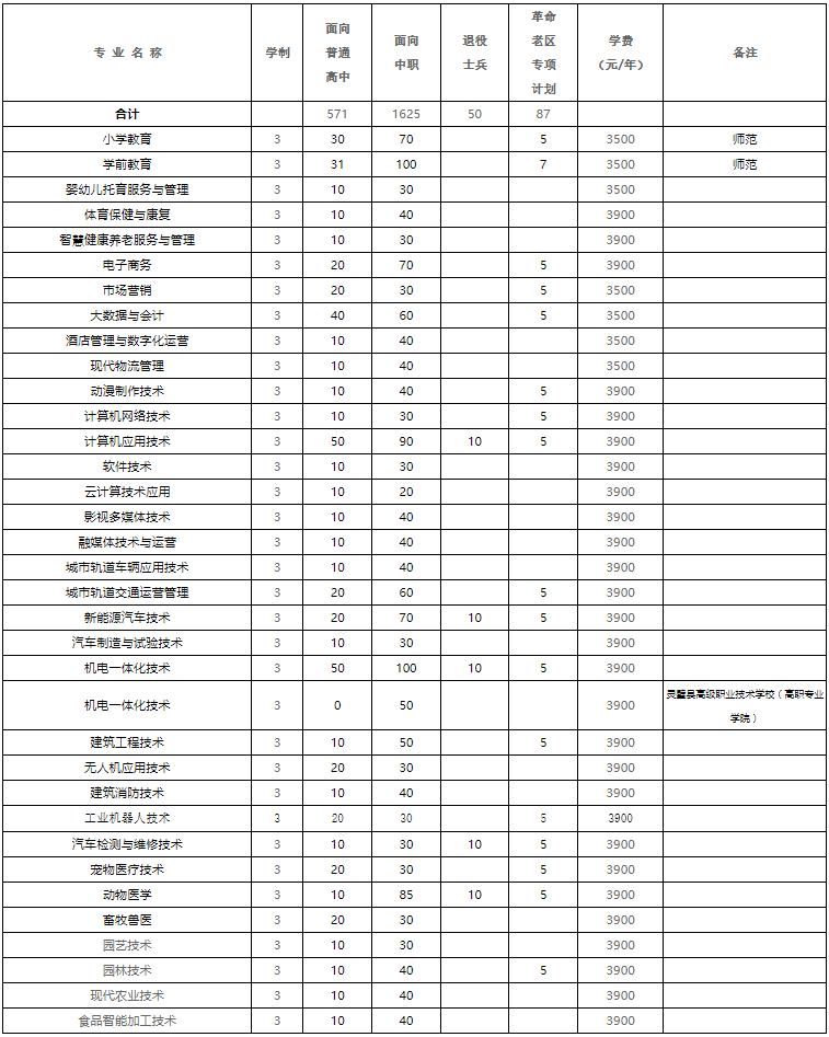 2024年宿州职业技术学院分类招生计划共计2333人,其中面向普通高中生571人,面向中职生1625人,面向退役士兵50人,面向革命老区专项计划87人。详情如下: