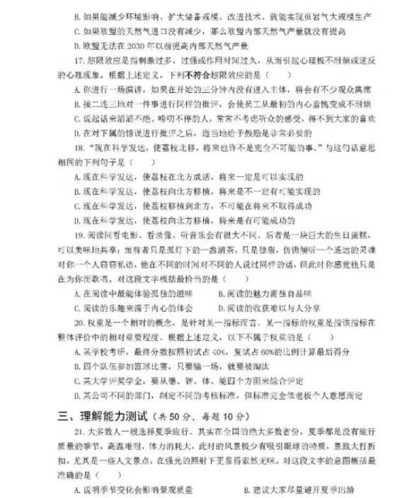 安徽高职分类考试职业技能测试分为专业能力测试和技术技能测试,一般专业能力测试会考查到同学们的综合素质能力,表达能力、理解能力和分析推理能力,接下来一起来看看试题吧。