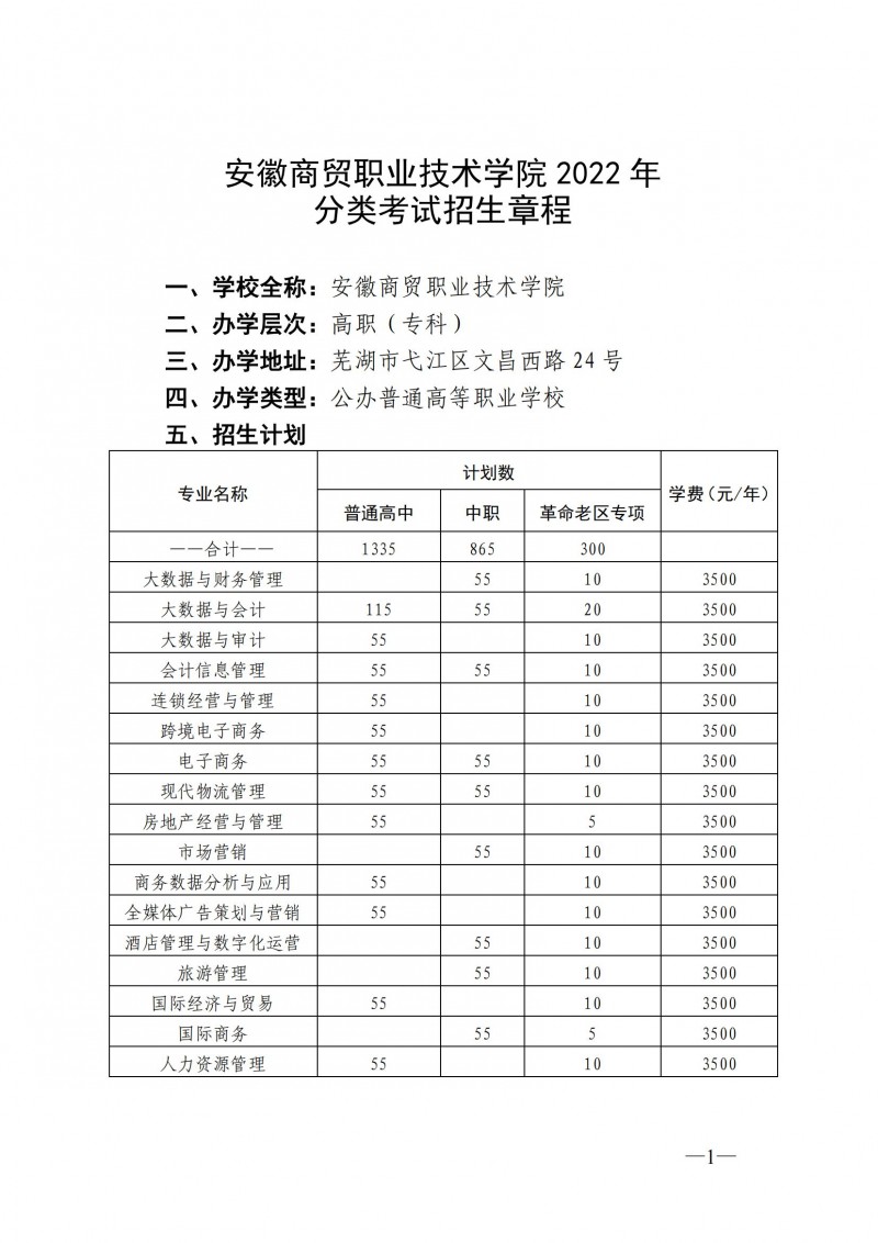 安徽高职分类考试网分享安徽商贸职业技术学院2022年分类考试招生章程希望能给大家提供帮助!