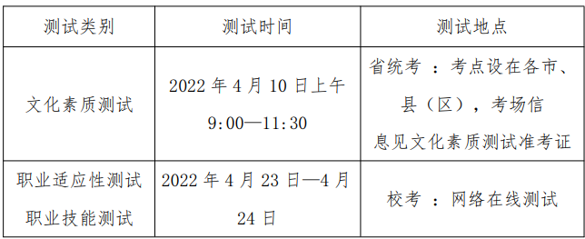 2.职业适应性测试(除中职毕业生以外的其他考生参加)