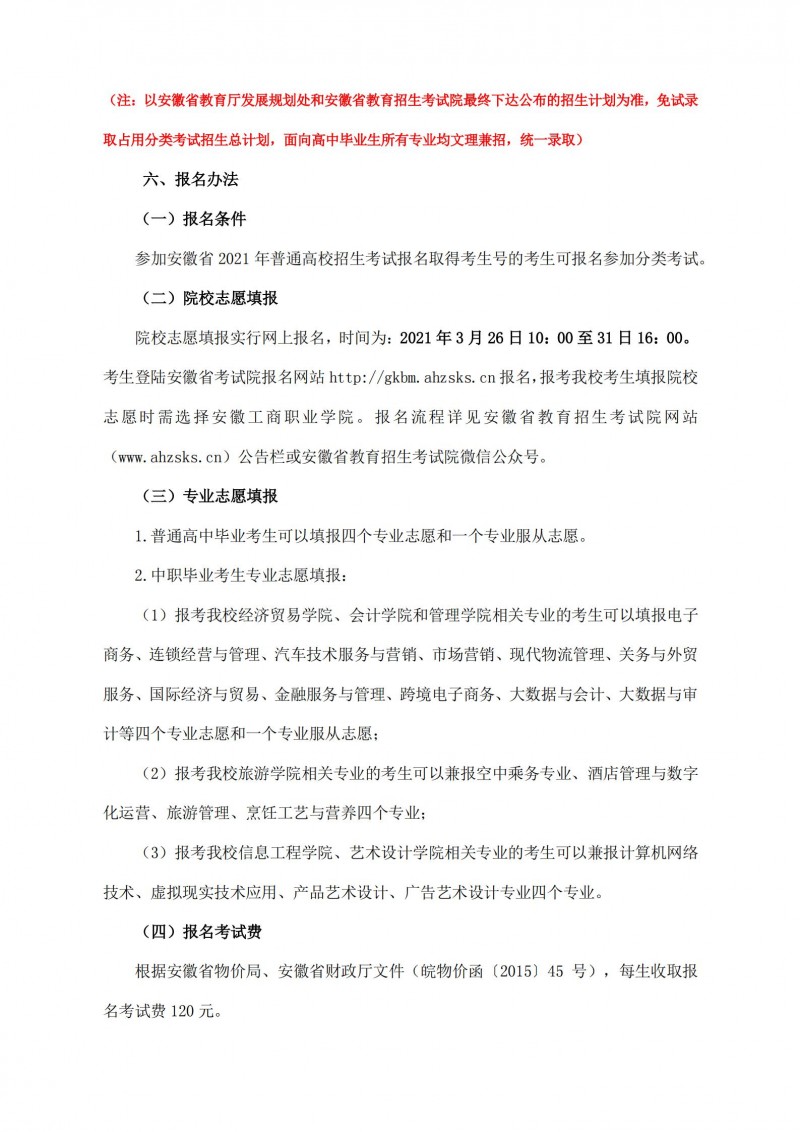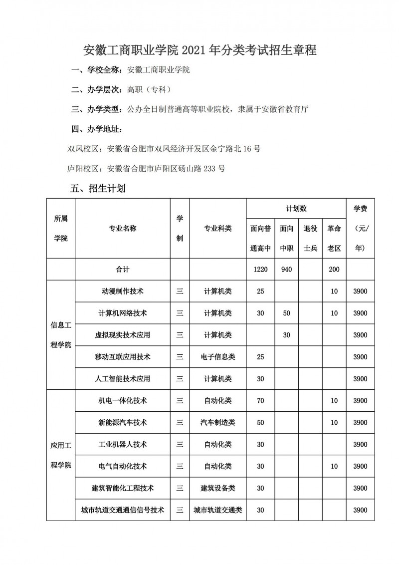 安徽高职分类考试网分享安徽工商职业学院2021年分类考试招生章程希望能给大家提供帮助!