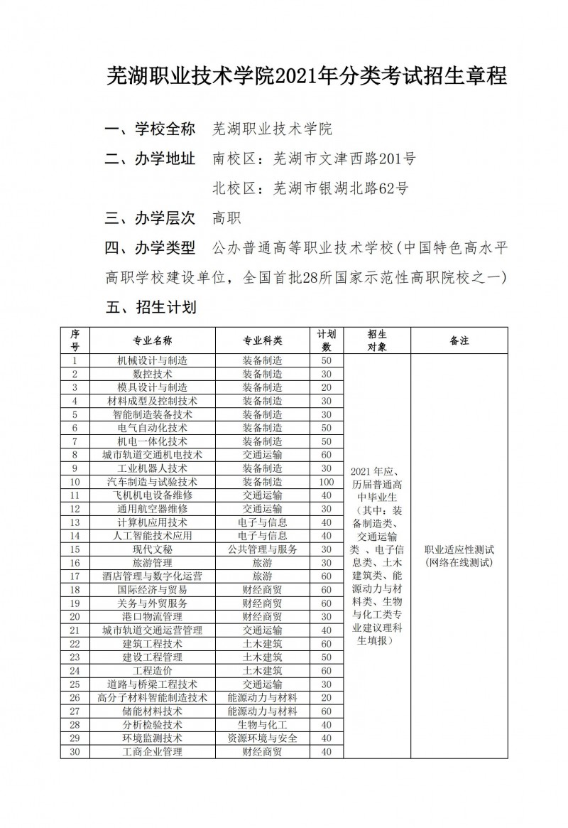 您现在的位置: 安徽高职分类考试网 >  招生院校 > 芜湖职业技术学院 > 招生简章  > 芜湖职业技术学院2021年分类考试招生章程