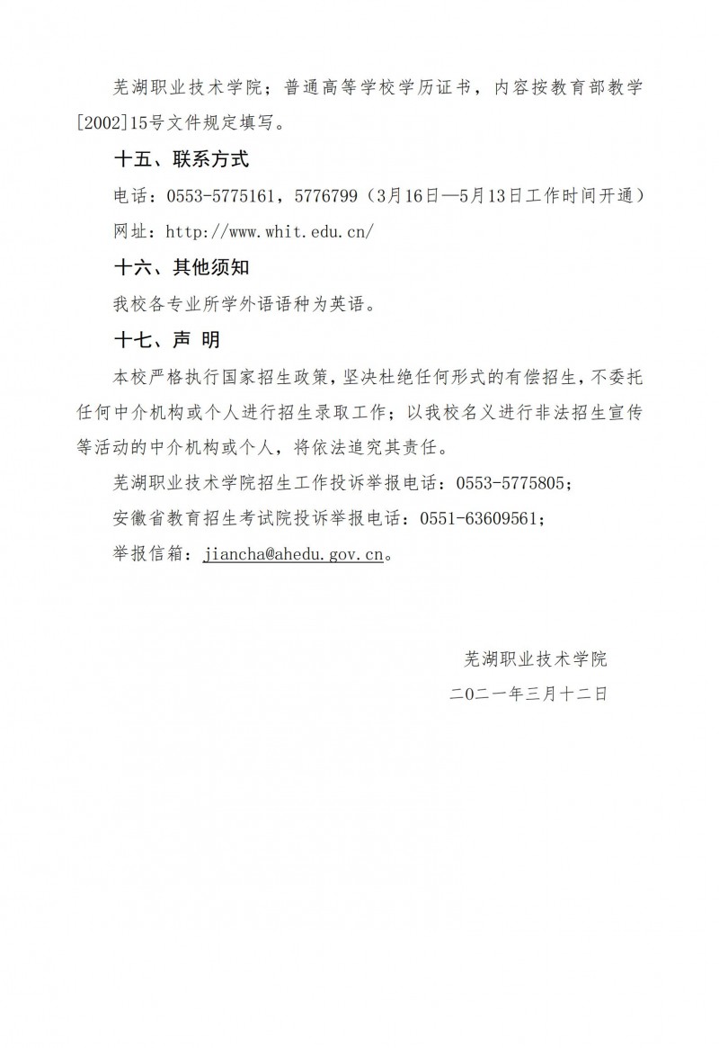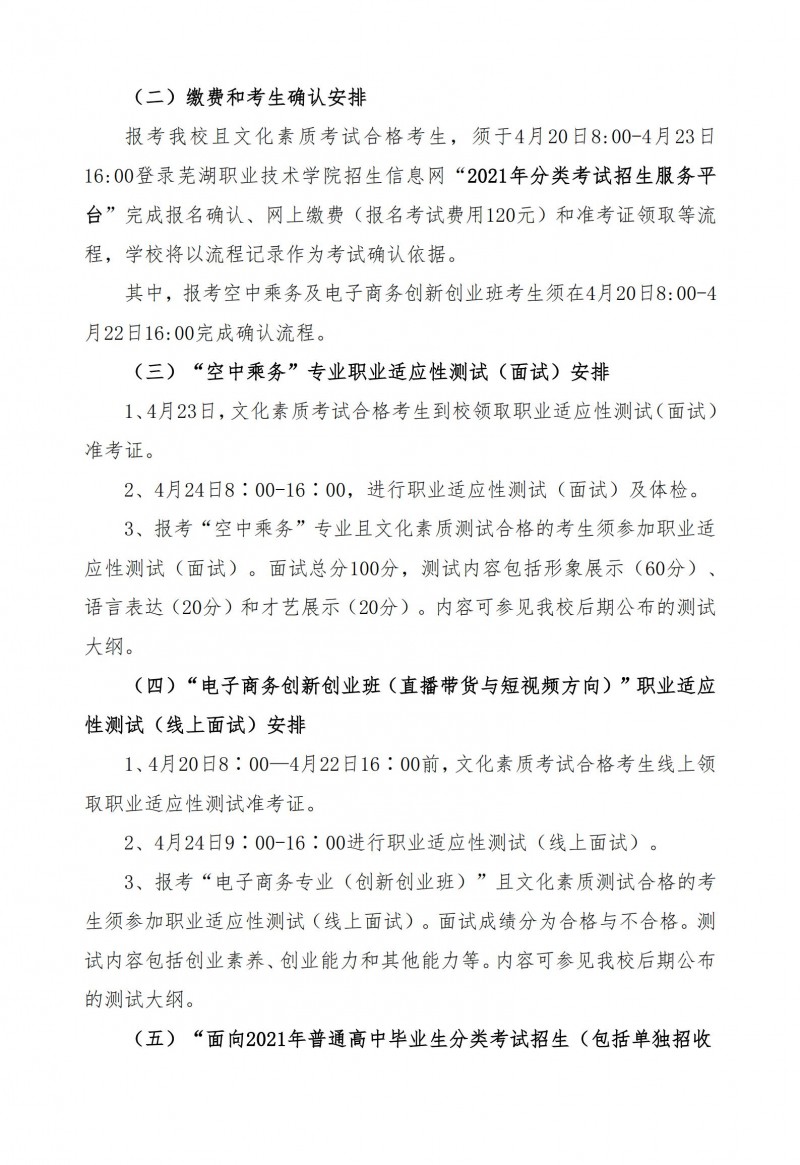 以上就是“芜湖职业技术学院2021年分类考试招生章程”的全部内容,更多关于安徽高职分类考试的相关内容,如安徽高职分类考试考报考条件、报名时间、考试科目、安徽高职分类考试成绩查询、分数线等敬请关注安徽高职分类考试网。